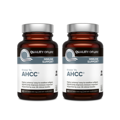The AHCC® used in AHCC® Rx (called AHCC® FD, previously named AHCC® Pro) has a higher potency than the regular AHCC® used in our other AHCC® products. Each 300 mg softgel of AHCC® Rx is equivalent to one 500 mg capsule of regular AHCC®.