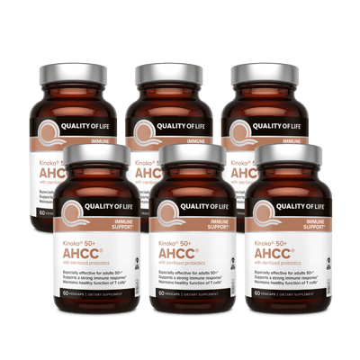 Kinoko® 50+ AHCC® combines two clinically proven immune ingredients to provide advanced immune support for anyone who needs it — particularly for those over 50.* Unlike some immune supplements, which are not appropriate for long-term use Kinoko® 50+ AHCC® is safe to take every day.