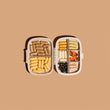 - Double Lock: Each inner compartment has a locking lid, and a large clasp secures the outer container — rubber middle to ensure a tight seal.