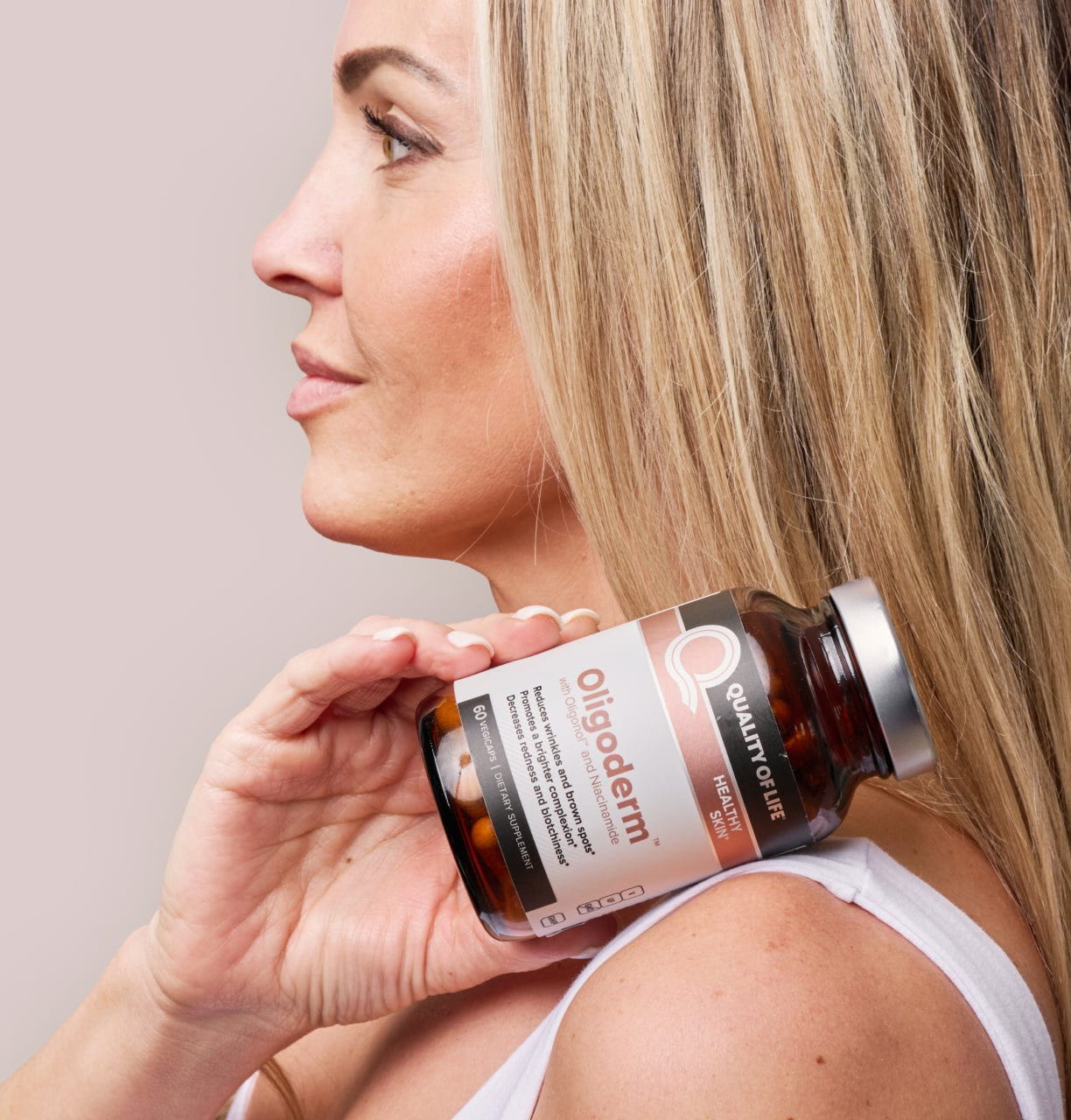 "Why does my skin look tired, no matter how many products I use? That's where Oligoderm comes in. It's not another cream or serum. It works from the inside out to transform your skin."